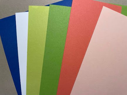 So I started with the 3 basics, and added 3 more – the Basic white, Granny Apple Green and Petal Pink. The extra colours just helped to bring it all together. The Blueberry Bushell is the base for my card so I cut it to 21 x 15 cm and scored on the long side at 10.5 cm. The white is cut to 14.1x 9.7 cm.