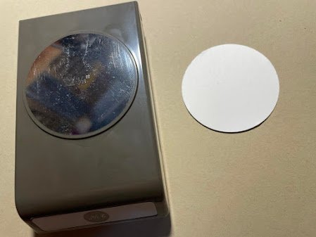 I cut a circle from the top centre of the Basic White Cardstock using the 2 3/8 circle punch.