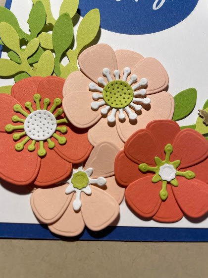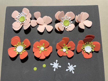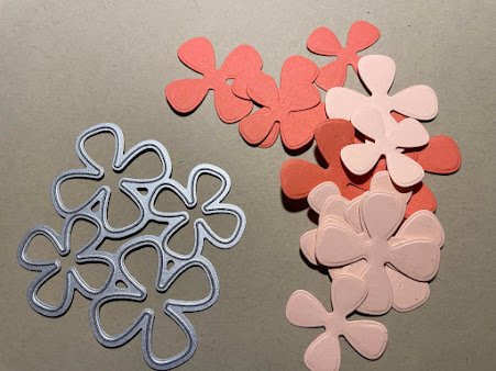 From there I wasn’t really sure where to go with this card so I hauled out my Cut and Emboss Machine and cut a whole pile of flowers from the Paper florist Dies in both Petal Pink and Calypso Coral.