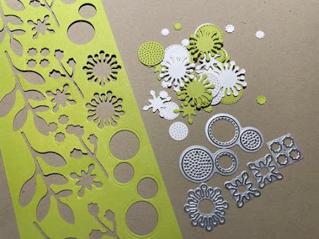 I started with the Bough Punch and cut a couple of stems in both the Lemon Lime Twist and the Granny Apple Green.