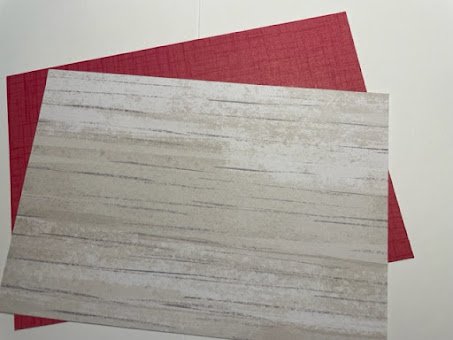 I cut the red sheet to 14.5 cm x 10 cm and the woodgrain piece to 14 cm x 9.5 cm.