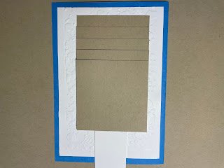 Using the 6 x 3 cm white cardstock – attach the folding piece to your card front. Again I used the multipurpose glue only on the folded tabs (glue side to the card base – not to the waterfall mechanism). The small piece will wrap around the longer pieceand then stick to the card front like a little pocket or tab, so the longer piece can slide back and forth. Its a good idea to test the positioning first to make sure there is room for the cards to flip as you pull the tab down.